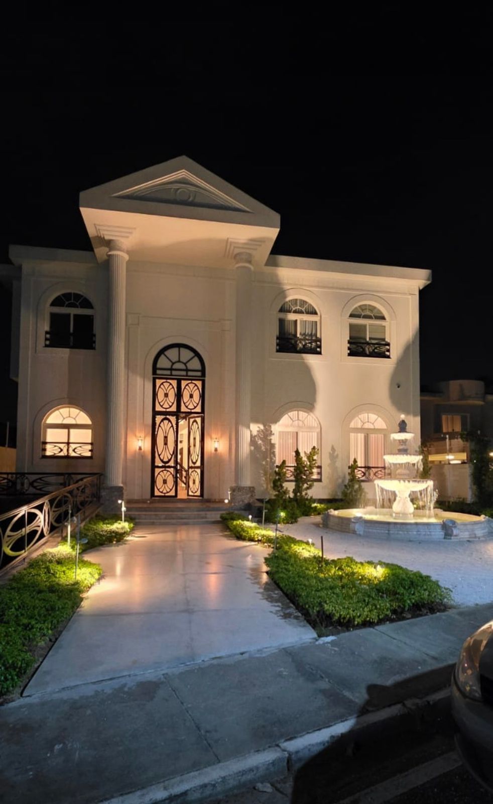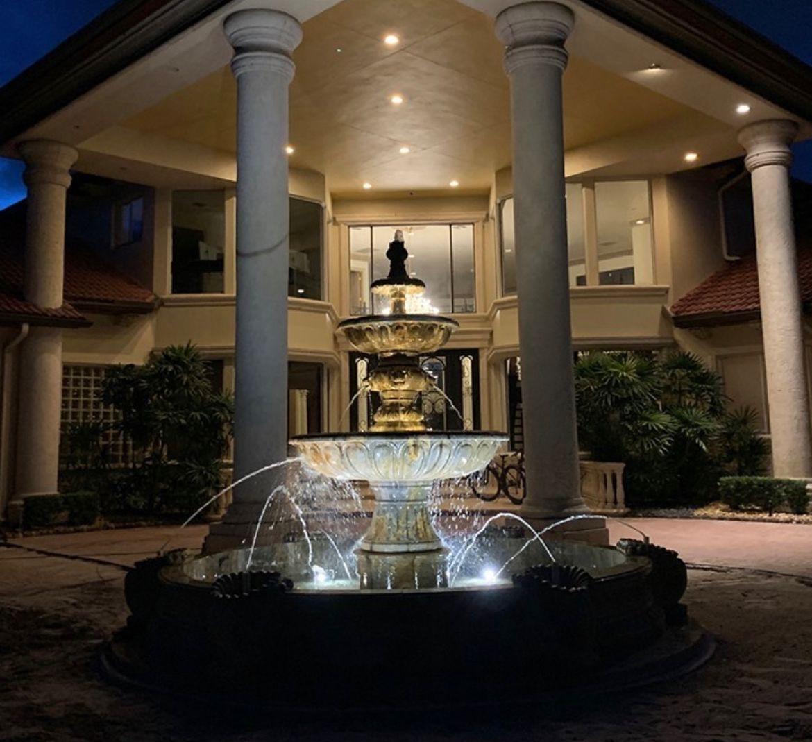 Uma escultura ou chafariz bem iluminado: